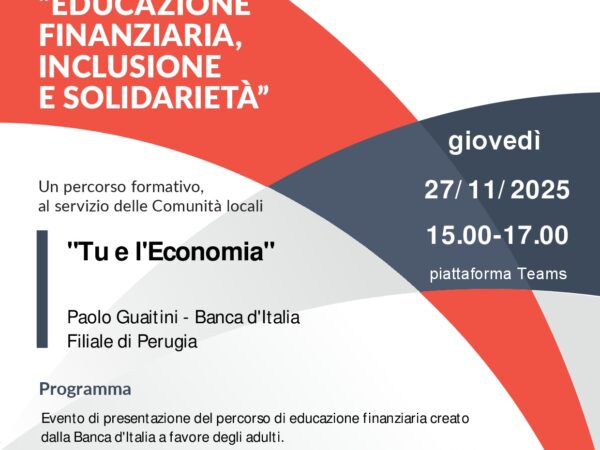 Caritas Italiana e Banca D’Italia hanno organizzato un percorso di educazione finanziaria che sarà realizzato dalla filiale di Perugia nei primi mesi del 2026. Tale percorso verrà presentato giovedì… Read More
