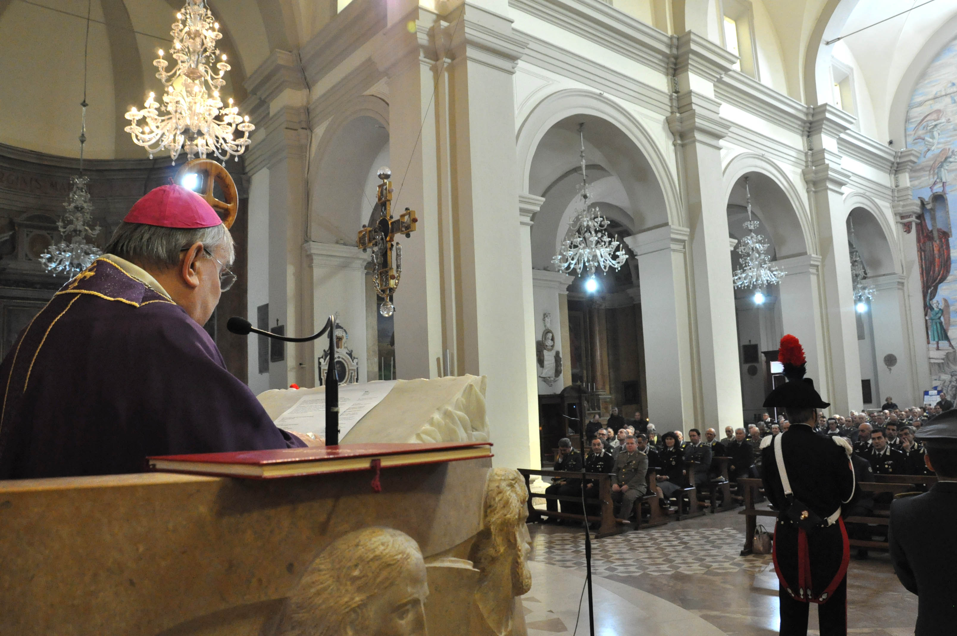 «La chiesa ha voluto manifestare la propria vicinanza, il proprio sostegno a tutti gli uomini e le donne impegnanti a garantire la sicurezza dei cittadini – ha ricordato il vescovo nell’omelia – convocandovi per la vostra specifica celebrazione del Giubileo della Misericordia. Viene offerta l’opportunità di un bagno rigeneratore e di un nuovo cammino di vita. Le ombre nascoste eppure pesanti, i peccati, i rancori, le ingiustizie, le debolezze trasformate in ferite, mai rimarginate; le situazioni che non abbiamo mai avuto il coraggio di riconoscere e affrontare apertamente e di cui proviamo vergogna: in questo giubileo possiamo veder tutto guarito e cancellato nel bagno della misericordia. Oggi siete chiamati “a rapporto” dal Signore per presentargli le vicende della vostra vita, gli eventi belli e tristi, successi e sconfitti personali e familiari, ma anche per affidargli i progetti che vi stanno a cuore. Il Signore è disposto a curare le nostre ferite, a colmare i nostri limiti, a ridarci speranza, a sostenere i nostri progetti di bene. Ogni Corpo è una famiglia di cui siete orgogliosi e della quale siete anche responsabili. Oggi il Signore ci riconcilia a sé e ci ridona l’onore perduto».