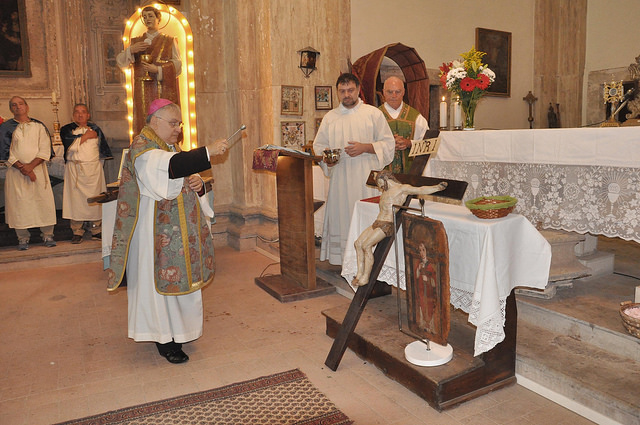 Nel corso della celebrazione nella chiesa della Santissima Trinità a Miranda sono stati presentati i restauri del crocifisso ligneo del Seicento, reso possibile con il contributo della Fondazione Carit e con le offerte delle famiglie della parrocchia che hanno permesso la ricostruzione della croce andata persa; e il restauro della tavola lignea dipinta su entrambe le facciate appartenente al fonte battesimale, anch’essa restaurata con il contributo della Fondazione Carit.