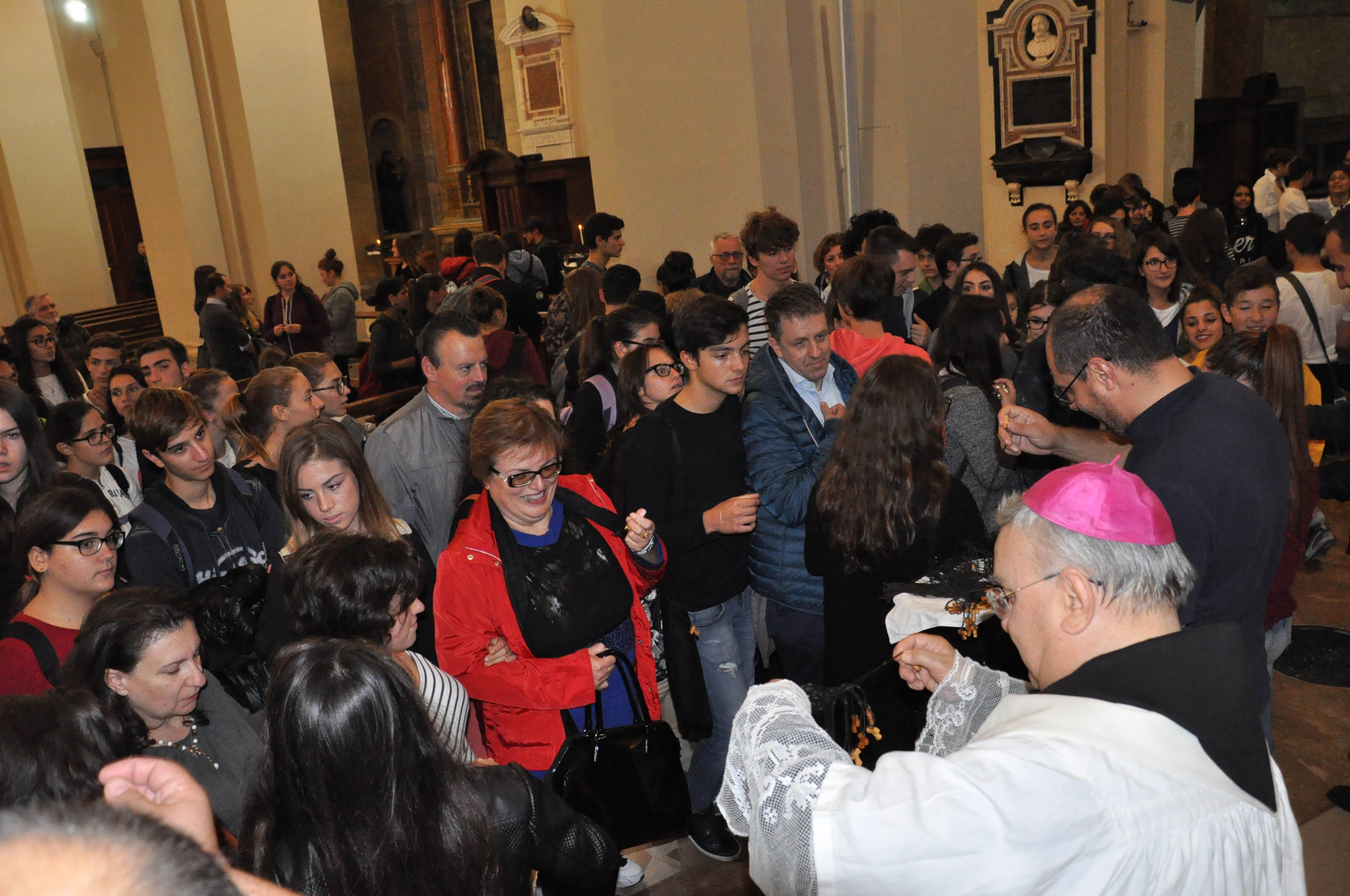 Dall’anfiteatro Fausto, in pellegrinaggio i partecipanti hanno raggiunto la Cattedrale dove il vescovo Piemontese li ha introdotti al significato dell’anno giubilare e al passaggio della Porta santa. In chiesa i tre ragazzi dell’istituto industriale “Allievi” hanno letto il brano del Vangelo della parabola del figliol prodigo, che il vescovo ha commentato evidenziando come «spesso capita di pretendere il tutto, di vivere dissolutamente in senso materiale e spirituale, tradendo la dignità di figli di Dio, ma bisogna avere il coraggio del perdono perché c’è l’amore grande di Dio che è misericordioso e perdona sempre. Tornando alle vostre case, il perdono del Signore che avete sperimentato si trasformi in misericordia per verso gli altri, impegnandovi nelle opere di misericordia corporali e spirituali. L’anno santo della Misericordia ci educa alla compassione, alla umanità, per farci sperimentare il perdono, l’amnistia e la misericordia di Dio e dei nostri fratelli, compagni di cammino».