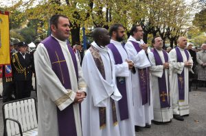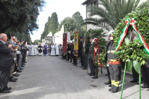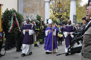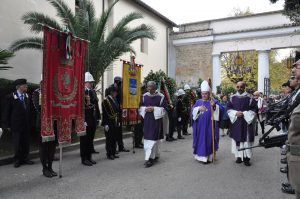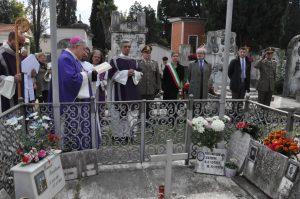 La cerimonia è proseguita all’interno del cimitero civico con la benedizione delle corone d’alloro, la preghiera in memoria dei caduti in guerra davanti al riquadro del sacrario e la deposizione delle corone ai monumenti lungo il viale del cimitero.