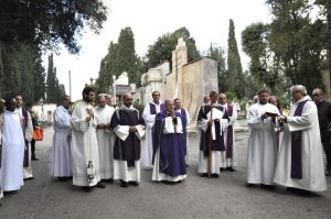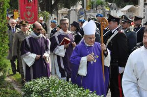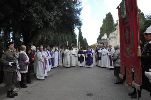 E’ stata celebrata questa mattina all’ingresso del Cimitero di Terni, dal vescovo padre Giuseppe Piemontese, la Santa Messa per la commemorazione di tutti i defunti, alla presenza delle autorità civili e militari cittadine, delle associazioni combattentistiche e d’arma, concelebrata con i sacerdoti della città.
