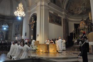 La celebrazione della patrona dell’Arma dei Carabinieri, proclamata tale nel 1949 da papa Pio XI, è stata presieduta nella Cattedrale di Terni dal vescovo Giuseppe Piemontese, concelebrata dal cappellano militare don Aldo Nigro e dal parroco don Carlo Romani, alla presenza delle autorità civili e militari della provincia, del vicepresidente della Regione Fabio Paparelli, del prefetto vicario Andrea Gambassi, del questore Carmine Belfiore, del procuratore capo della Repubblica Tribunale di Terni Alberto Liguori, del generale Francesco Benedetto comandante Legione Carabinieri Umbria, del comandante provinciale dei Carabinieri di Terni colonnello Giovanni Capasso, dei militari della compagnia Carabinieri di Terni e delle rappresentanze di carabinieri in congedo.