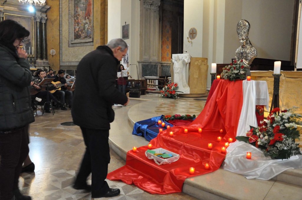 Una veglia di preghiera della comunità diocesana e un particolare dei giovani al santo Patrono dell’amore a cui guardano uomini e donne, specie i giovani, da ogni parte del mondo quale testimone e custode dell’amore verso Dio e dell’amore vicendevole, che fiorisce e cresce tra fidanzati, nella famiglia e nelle relazioni che sostengono l’impegno umano e civile.