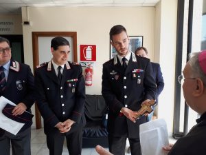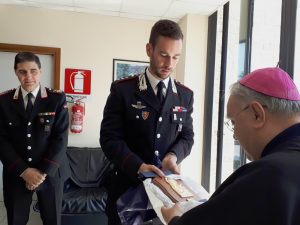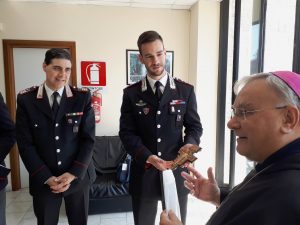 Nella mattinata il vescovo ha fatto visita alla caserma dei Carabinieri accolto dal capitano Maurizi e dagli altri sottufficiali. Il vescovo ha visitato i vari settori della caserma e il personale in servizio. Il comandante ha donato un’immagine della Virgo Fidelis e il vescovo un crocifisso di San Damiano