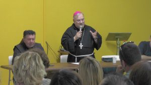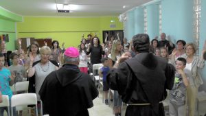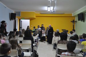 Nella terza giornata della visita pastorale nella parrocchia di San Massimiliano Kolbe il vescovo ha incontrato i ragazzi del catechismo e i loro genitori. I ragazzi hanno presentato i vari gruppi di catechesi e dei cartelloni di benvenuto da loro realizzati. Mons. Piemontese, dialogando con i genitori, ha sottolineato l’importanza del ruolo della famiglia nella trasmissione della fede, nella pratica religiosa.