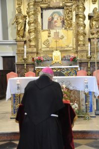 Ad accoglierlo nel santuario il parroco don Rafal Wlazo, che ha brevemente presentato le tre comunità.