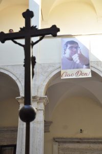 Il corteo che ha accompagnato don Marcello è partito dalla chiesa della Madonna del Cardellino dove era stata allestita la camera ardente ed è sceso verso il paese fino al castello dove ha avuto luogo la cerimonia funebre.