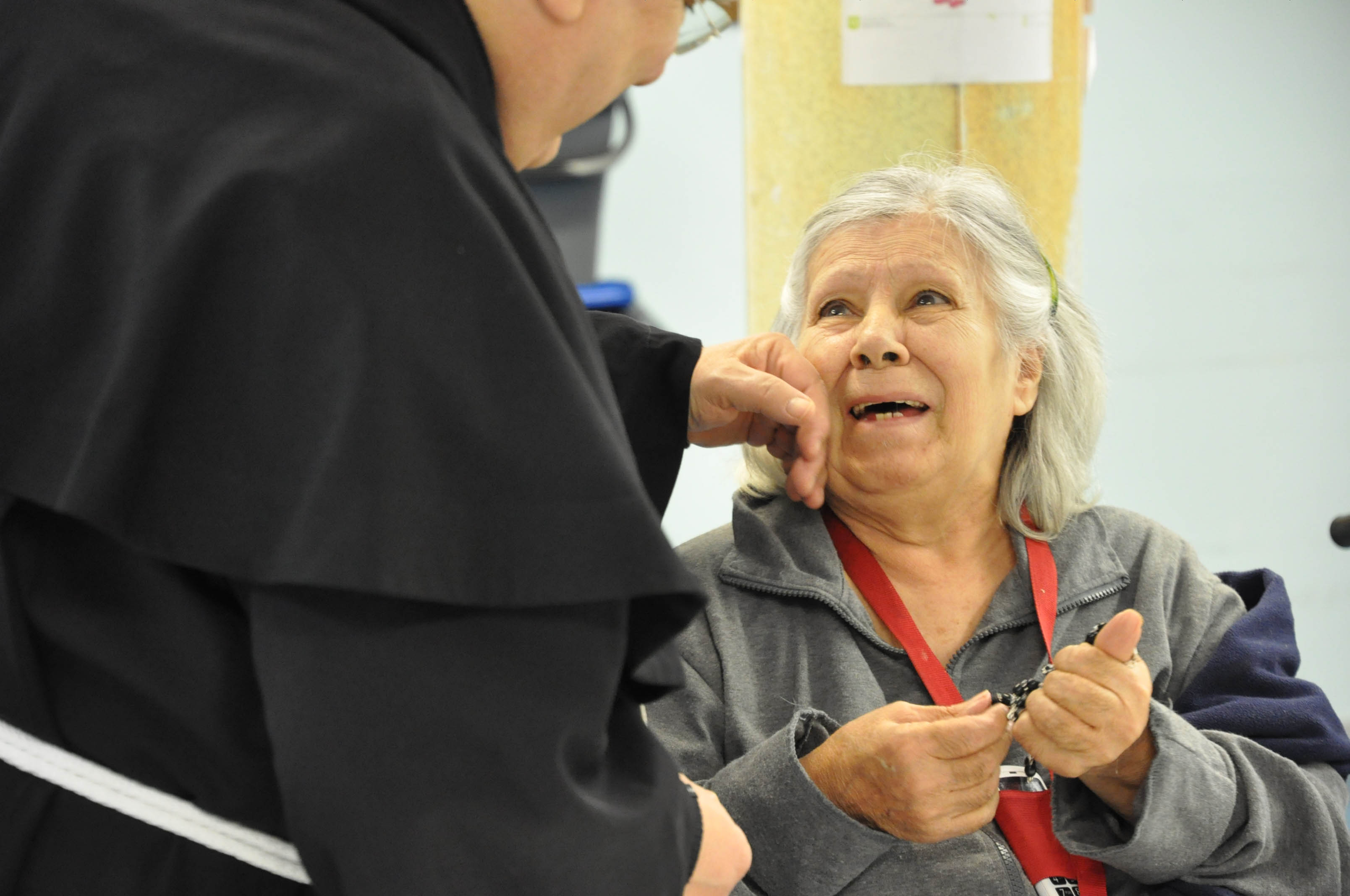 Nella seconda giornata della visita pastorale alla parrocchia del Sacro Cuore il vescovo ha incontrato gli anziani e malati e alcuni operatori della struttura residenziale geriatrica “Le Grazie”. Cordiale e commossa l’accoglienza al vescovo che ha salutato personalmente ciascuno, ha pregato con loro, impartito la benedizione e ha donato un rosario ai malati.