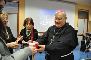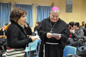 Gli studenti dell’Istituto comprensivo tecnico commerciale “Einaudi” di Narni scalo hanno incontrato il vescovo per la consegna degli gli addobbi per la tavola e i segnaposto con un pensiero augurale per il pranzo di Natale in episcopio del 25 dicembre. Come ormai da diverse anni, gli studenti realizzano con i materiali poveri e di recupero gli oggetti per la tavola, frutto di un percorso didattico e formativo legato al tema della solidarietà che sta alla base di questo loro impegno per il Natale. All’incontro con il vescovo, al quale era presente anche la dirigente scolastica Graziella Cacafave i ragazzi hanno presentato una breve rappresentazione in chiave contemporanea della ricerca di Maria e Giuseppe di un alloggio e un video sul dono del Natale.