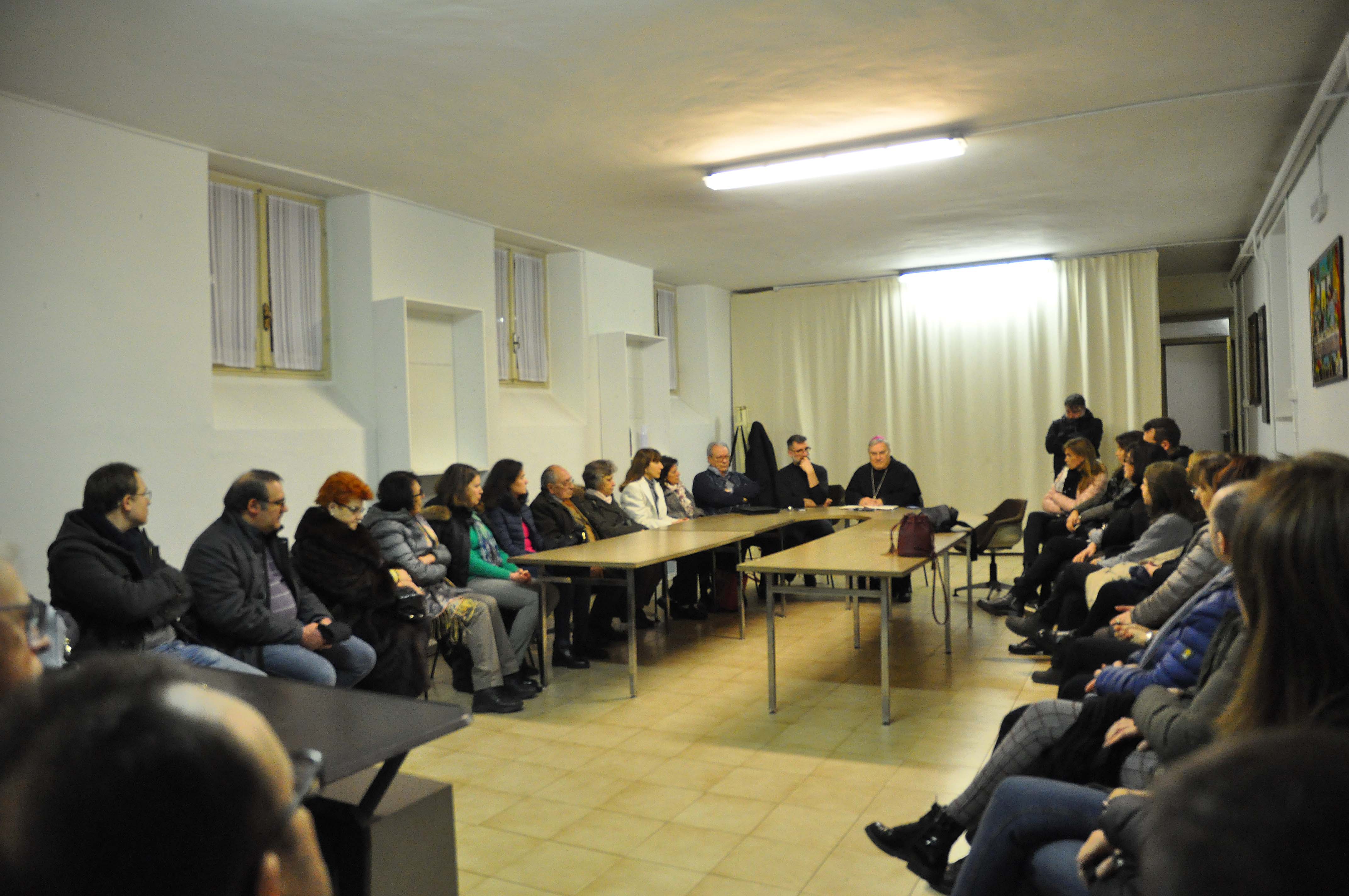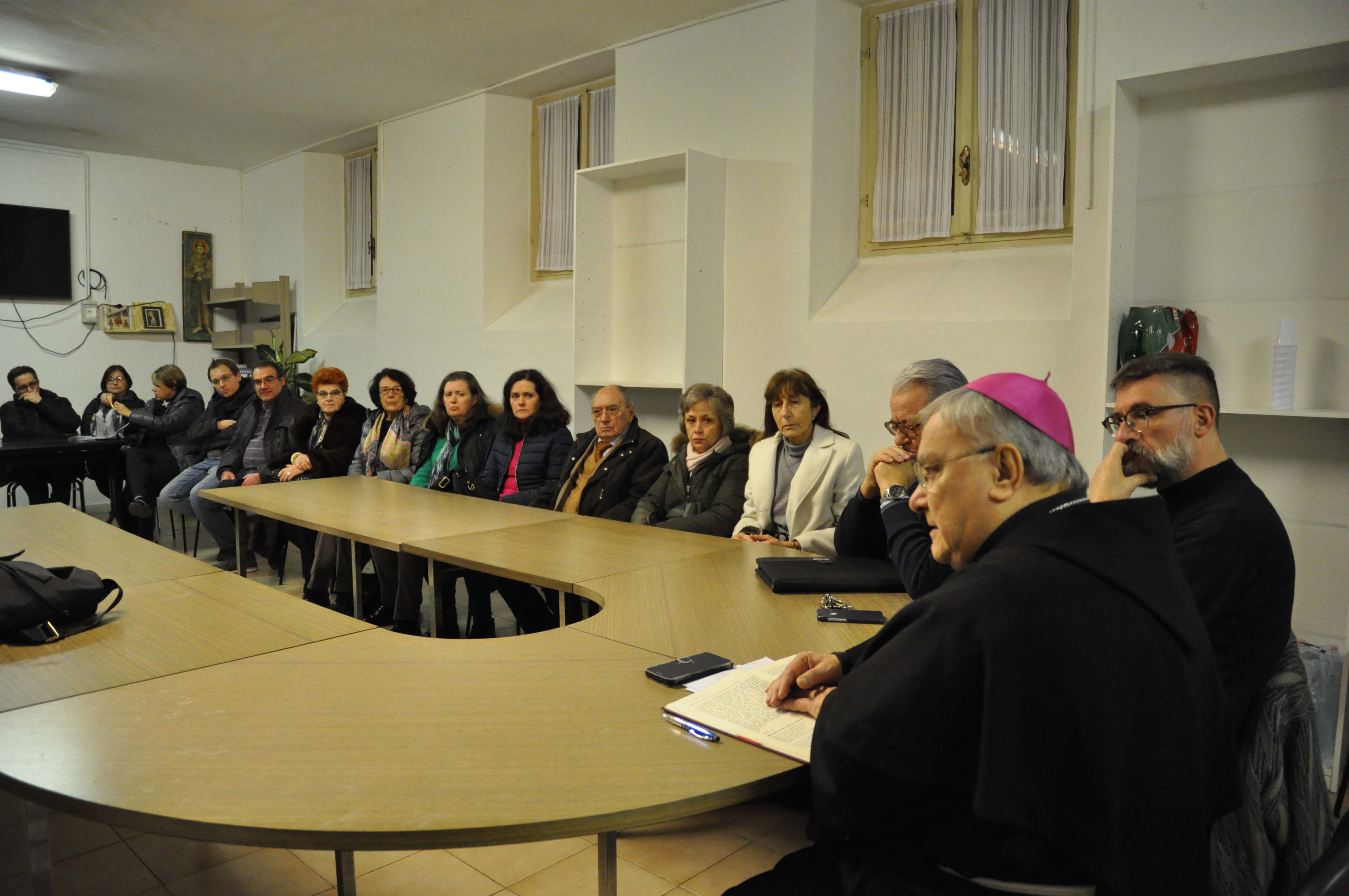 Nella visita pastorale il vescovo ha incontrato il numeroso gruppo dei ministri straordinari della santa comunione, i lettori, cantori e musicisti che si occupano della liturgia domenicale. Il vescovo ha ringraziato tutti per il servizio svolto e ricordando l’importanza del ministero loro affidato: “Siate sempre consapevoli di questo dono che è l’eucarestia e fatene partecipi i vostri malati a cui portate la comunione. Cercate di essere il più possibile degni di partecipare all’eucaristia. Nella nostra piccolezza, nella nostra miseria, nei nostri peccati, confidiamo nella misericordia del Signore e sforziamoci di celebrare in maniera degna, nella carità, nell’amore, nella comunione il mistero di Gesù morto e risorto”.