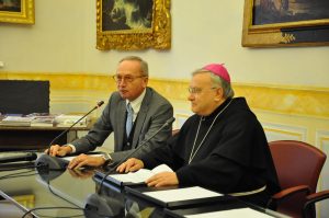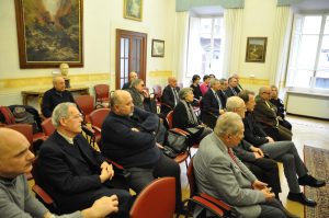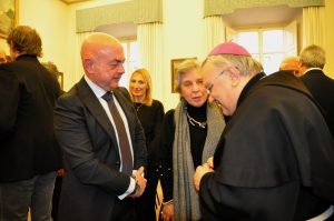 Ha poi ricordato la figura del vescovo di Terni Vincenzo Tizzani, sacerdote attento ai bisogni della gente e soprattutto dei poveri, che è stato il fondatore, agli inizi dell’Ottocento, della cassa di risparmio, quale istituto che potesse dare aiuto alle persone in difficoltà. A lui si devono anche le società di mutuo soccorso per gli operai in città e la lotta all’usura. “Sono qui per ringraziarvi per quello che fate per la città – ha detto padre Piemontese – per la chiesa cattolica e le associazioni. La chiesa è come un canale che riceve e ridona: penso a tutte le attività della Caritas. della San Martino, della San Vincenzo, per l’emergenza freddo, per lenire difficoltà e sofferenze che sono aumentate in maniera esponenziale. Le iniziativa che prendete nei nostri confronti, sentiamo la responsabilità di portarle a compimento coscientemente e nel migliore dei modi. E in questo ricordo anche i progetti per la conservazione e tutela dei beni culturali. Un patrimonio da tramandare agli altri. Rinnovo anche la disponibilità per iniziative comuni. Ed infine l’opera per la formazione e l’educazione dell’Istituto Leonino che è un’opera importante che vorremmo portare avanti per il bene della città.