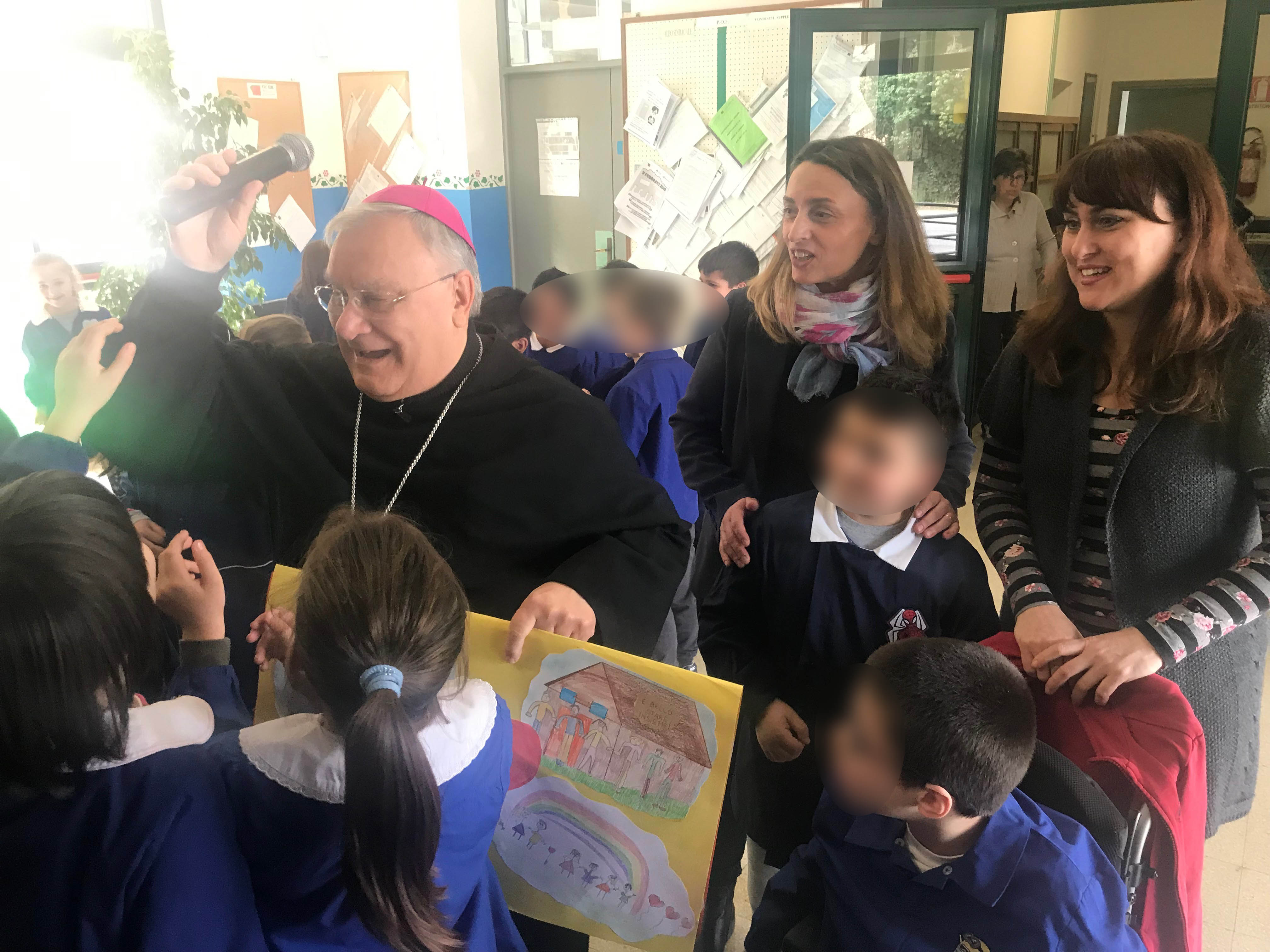 “Il vescovo è come il papà di tutti i cristiani di un territorio – ha detto padre Giuseppe -. E’ un compito bello e impegnativo, bisogna predicare, parlare del Vangelo e portare nella città la concordia, aiutare tutti a volersi bene a collaborare perché tutti stiano bene. A voi ragazzi rivolgo l’invito ad essere attenti e bravi studenti per essere buoni cittadini e bravi cristiani, che possiate crescere sani, sapienti e intelligenti tutti e di vivere sempre riconoscendo tutti come fratelli”.