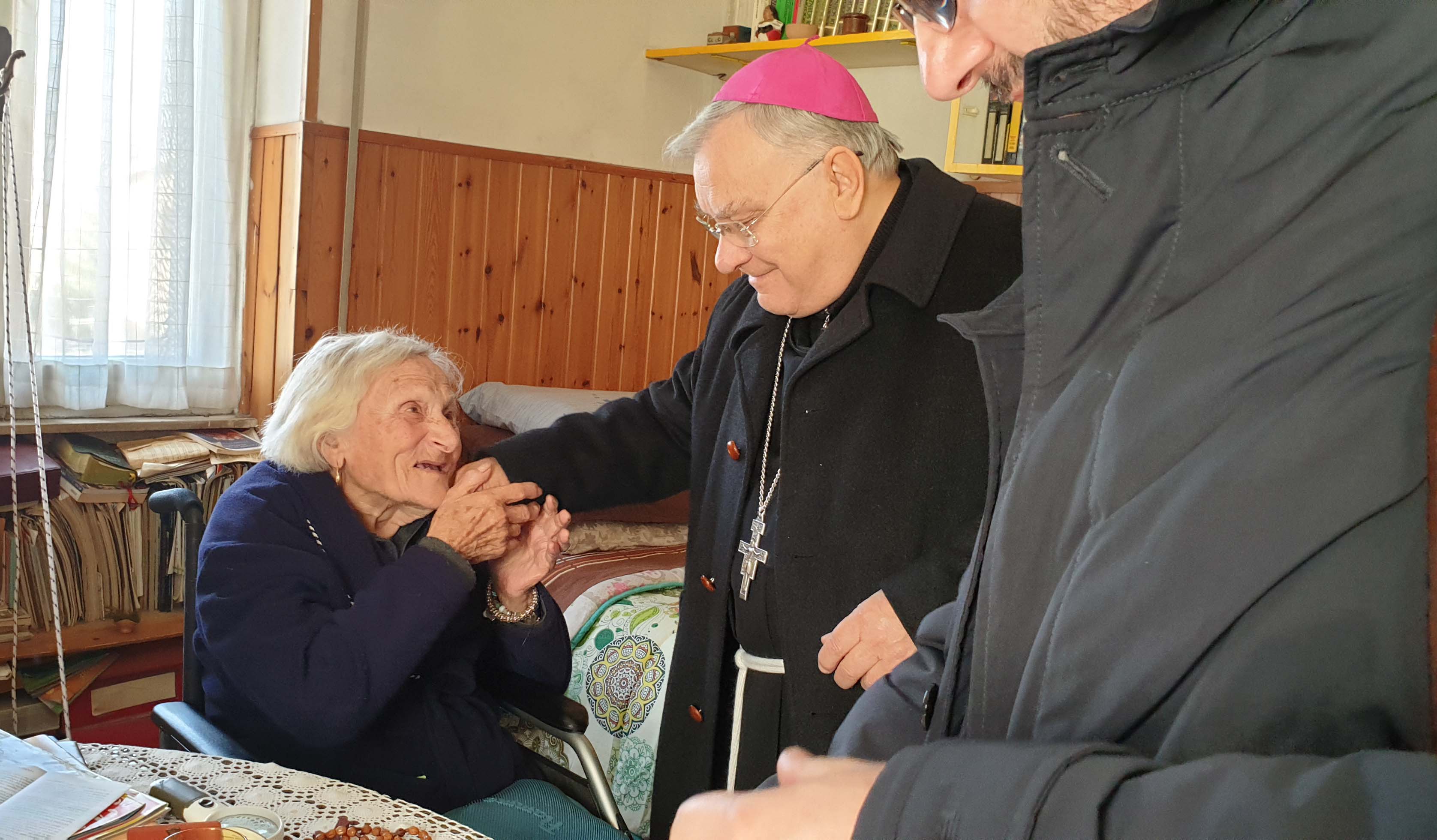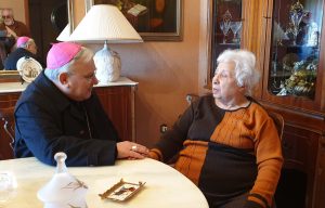 Nel terzo giorno della visita pastorale alla parrocchia di San Giovanni a Terni, il vescovo ha incontrato numerosi anziani e malati ai quali ha fatto visita nelle loro case. Un’accoglienza calorosa e commossa degli anziani e dei malati, con i quali il vescovo ha dialogato familiarmente e pregato, conoscendo e condividendo tante storie di sofferenza e di dolore affrontate con fede e speranza, ma anche tante storie di vita e ricordi legati alla vita parrocchiale e del popoloso quartiere di San Giovanni.