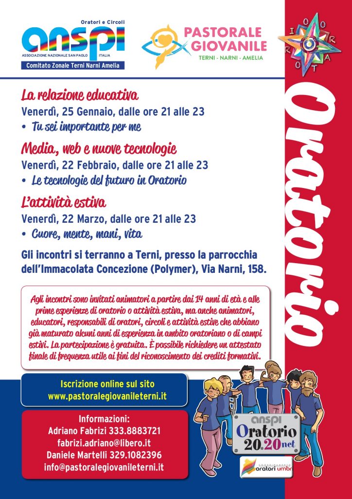 Venerdì 22 febbraio alle ore 21 secondo incontro del percorso di formazione animatori organizzato in collaborazione con ANSPI. Saranno 3 incontri con cadenza mensile e seguirà un quarto incontro per la presentazione del sussidio estivo.