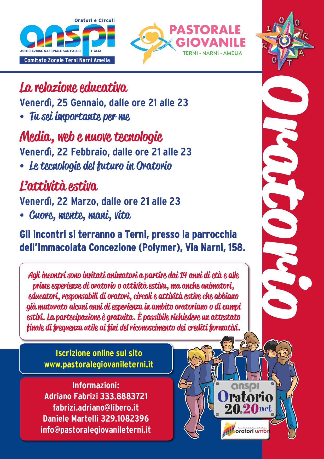 E’richiesta l’iscrizione online (completamente gratuita) sul nuovo sito www.pastoralegiovanileterni.it