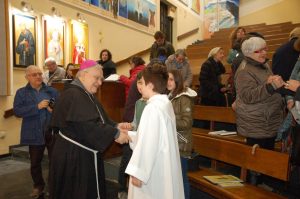 “Sono qui conoscervi, per sostenervi e incoraggiarvi a riprendere con rinnovato vigore il cammino di fede ad essere testimoni e seme di fede nei vostri ambienti di vita. Mi congratulo con questa comunità per il dinamismo e la presenza di tanti laici impegnati in vario modo al servizio della chiesa e dei fratelli. Questa comunità è fermento cristiano in questo territorio e ha creato una aggregazione attorno alla chiesa e a Gesù. Questo è motivo di ringraziamento e di incoraggiamento ad una prospettiva missionaria verso le tante persone che abitano qui, a cui va annunciato il Vangelo con le parole e con i gesti di carità, che vanno incrementati come testimonianza per coloro che vivono ai margini o hanno bisogno. E’ bello che tanti carismi e doni presenti si uniscano in questa comunità nella condivisione e collaborazione: continuate nell’accoglienza e operosità. Terni è sempre stata città accoglienza per tanti, negli anni passati, che venivano da ogni parte d’Italia. Oggi ancora di più non bisogna fare distinzioni nell’accoglienza”.