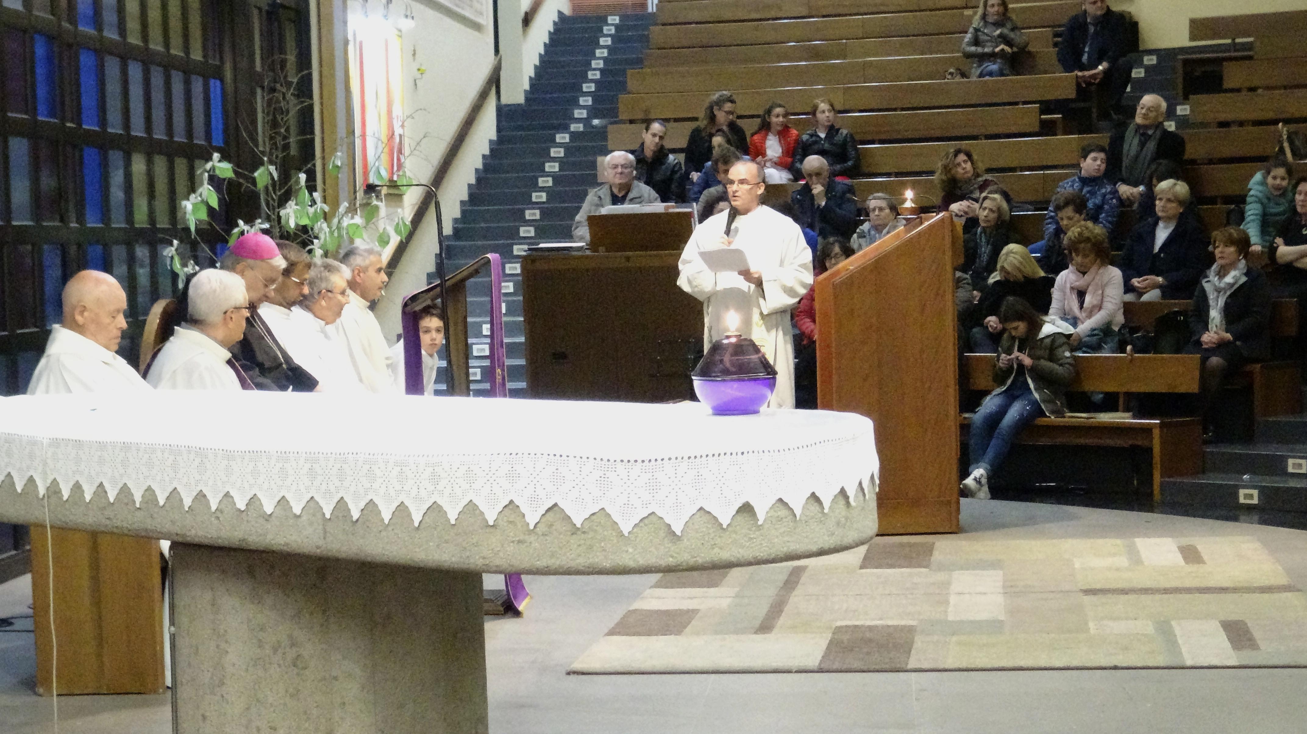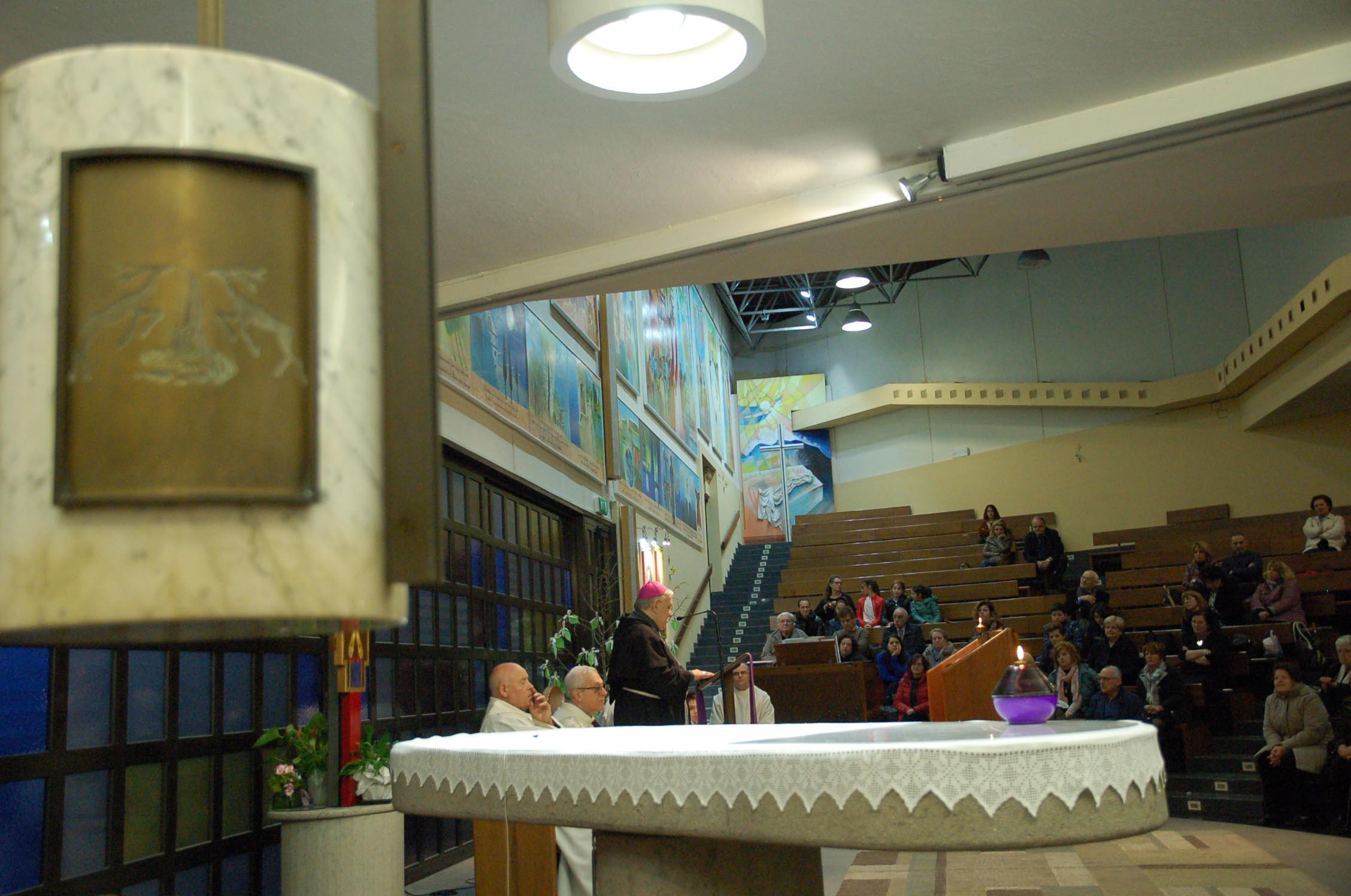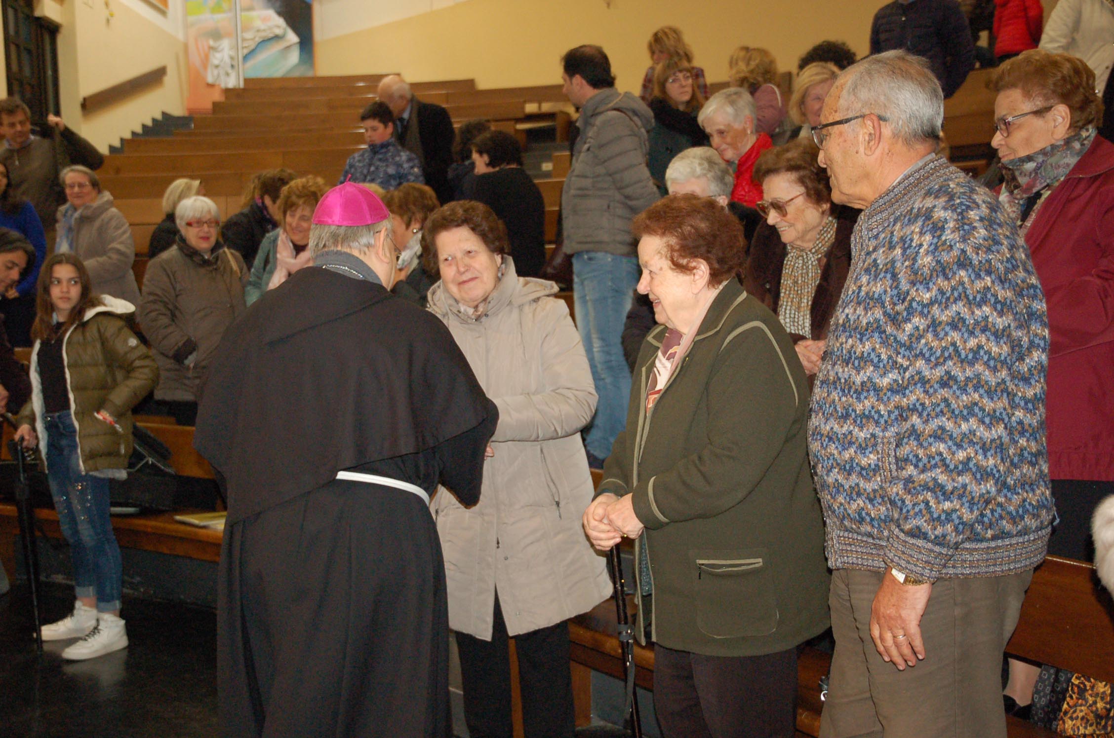 “Sono qui conoscervi, per sostenervi e incoraggiarvi a riprendere con rinnovato vigore il cammino di fede ad essere testimoni e seme di fede nei vostri ambienti di vita. Mi congratulo con questa comunità per il dinamismo e la presenza di tanti laici impegnati in vario modo al servizio della chiesa e dei fratelli. Questa comunità è fermento cristiano in questo territorio e ha creato una aggregazione attorno alla chiesa e a Gesù. Questo è motivo di ringraziamento e di incoraggiamento ad una prospettiva missionaria verso le tante persone che abitano qui, a cui va annunciato il Vangelo con le parole e con i gesti di carità, che vanno incrementati come testimonianza per coloro che vivono ai margini o hanno bisogno. E’ bello che tanti carismi e doni presenti si uniscano in questa comunità nella condivisione e collaborazione: continuate nell’accoglienza e operosità. Terni è sempre stata città accoglienza per tanti, negli anni passati, che venivano da ogni parte d’Italia. Oggi ancora di più non bisogna fare distinzioni nell’accoglienza”.