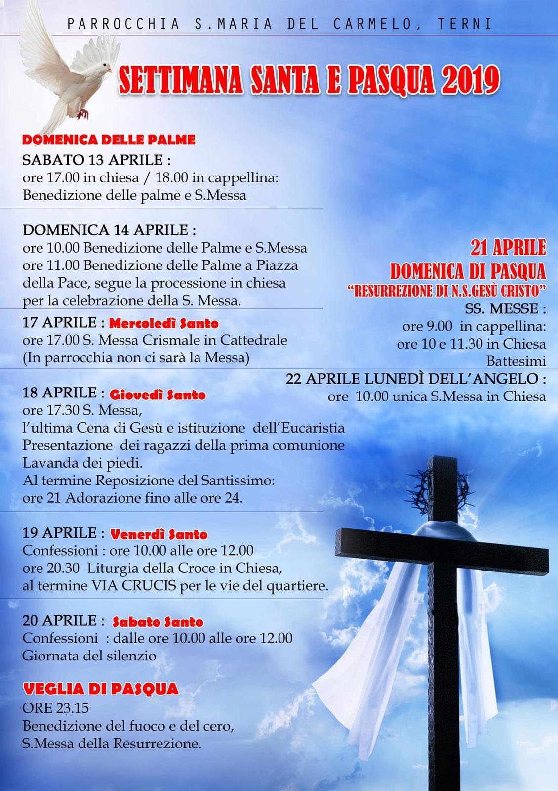 Uncategorized 9 Aprile 2019 redattore Parrocchia santa Maria del Carmelo – celebrazioni pasquali Le celebrazioni della settimana santa e del triduo pasquale