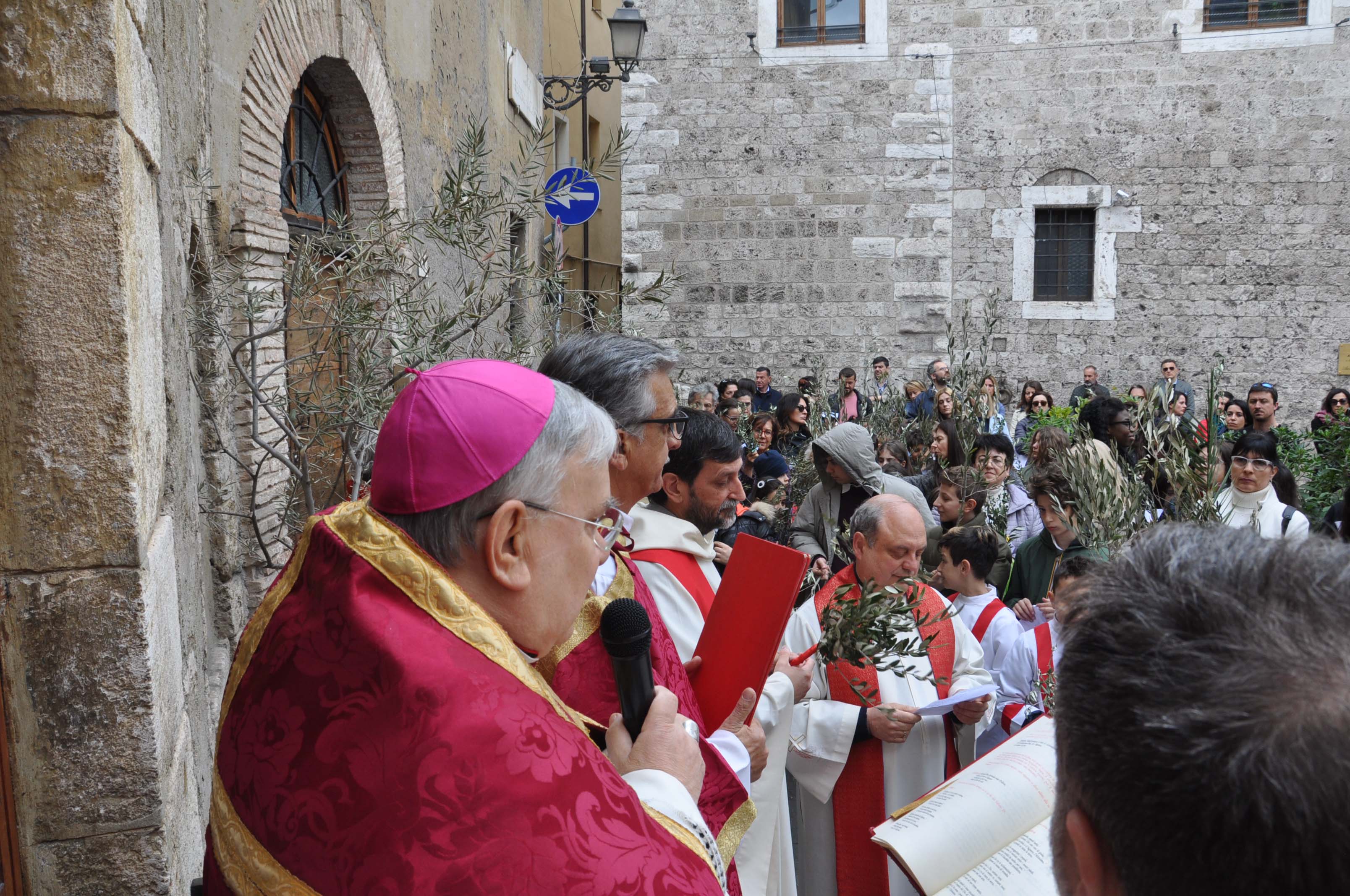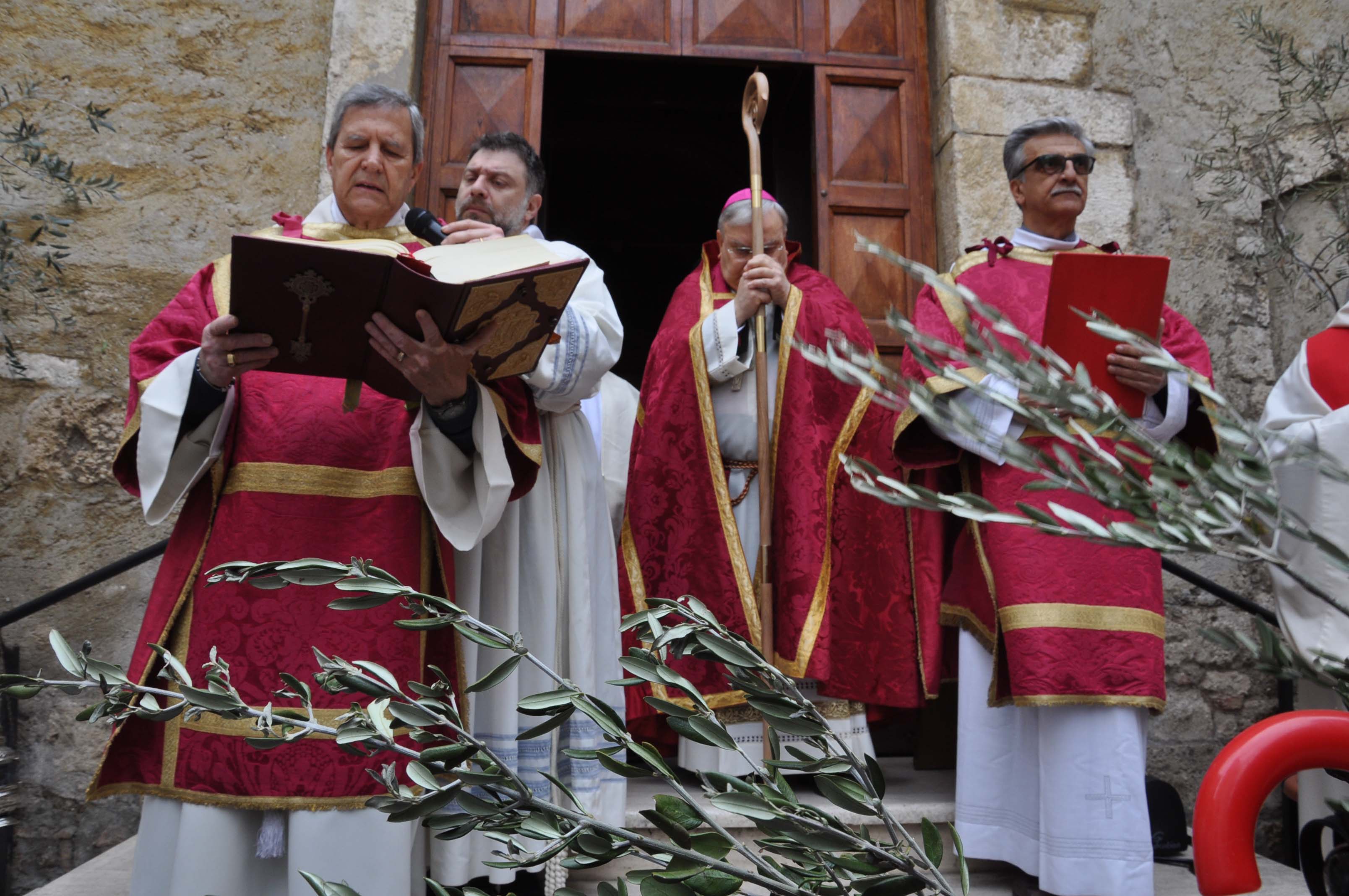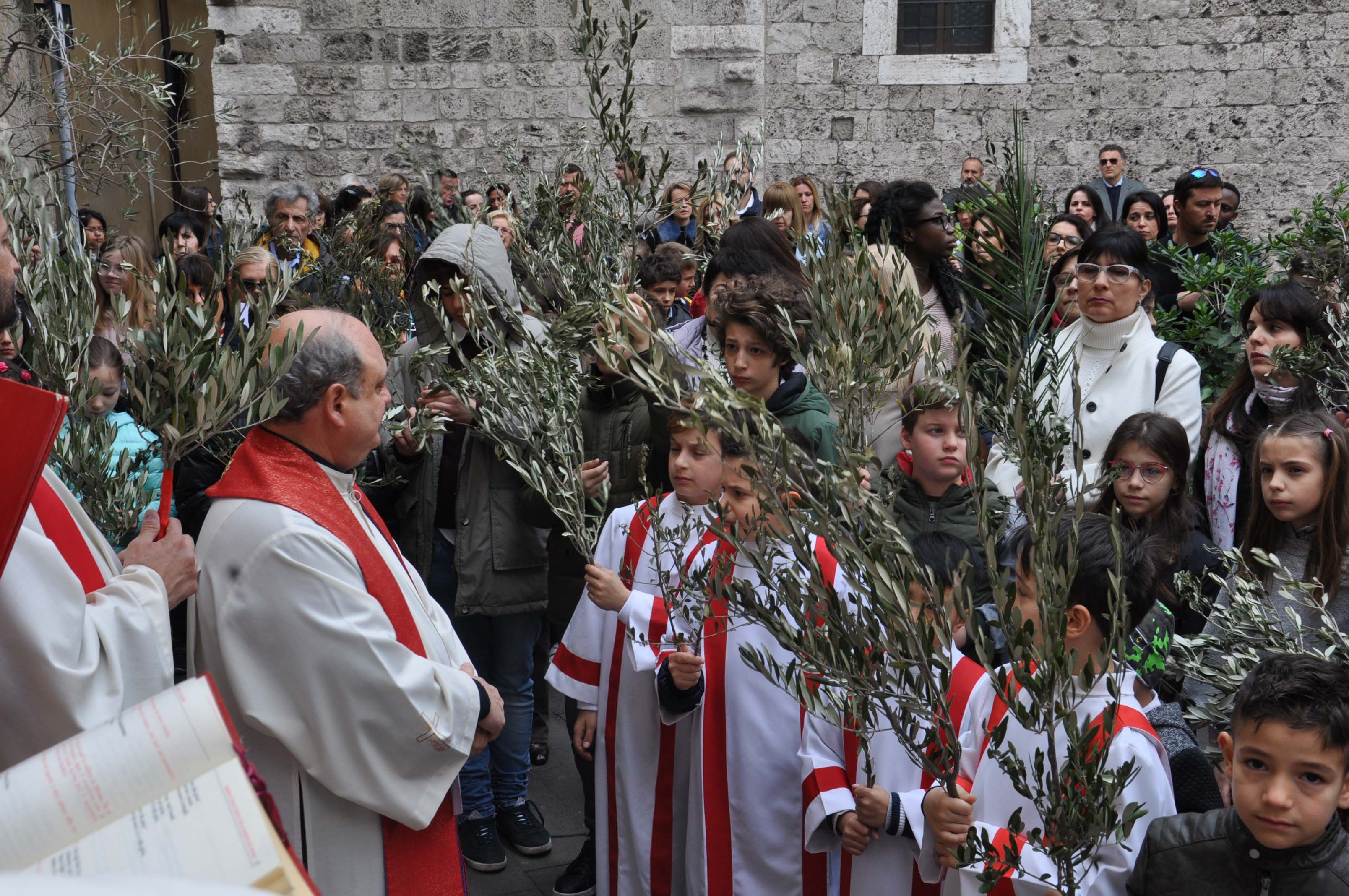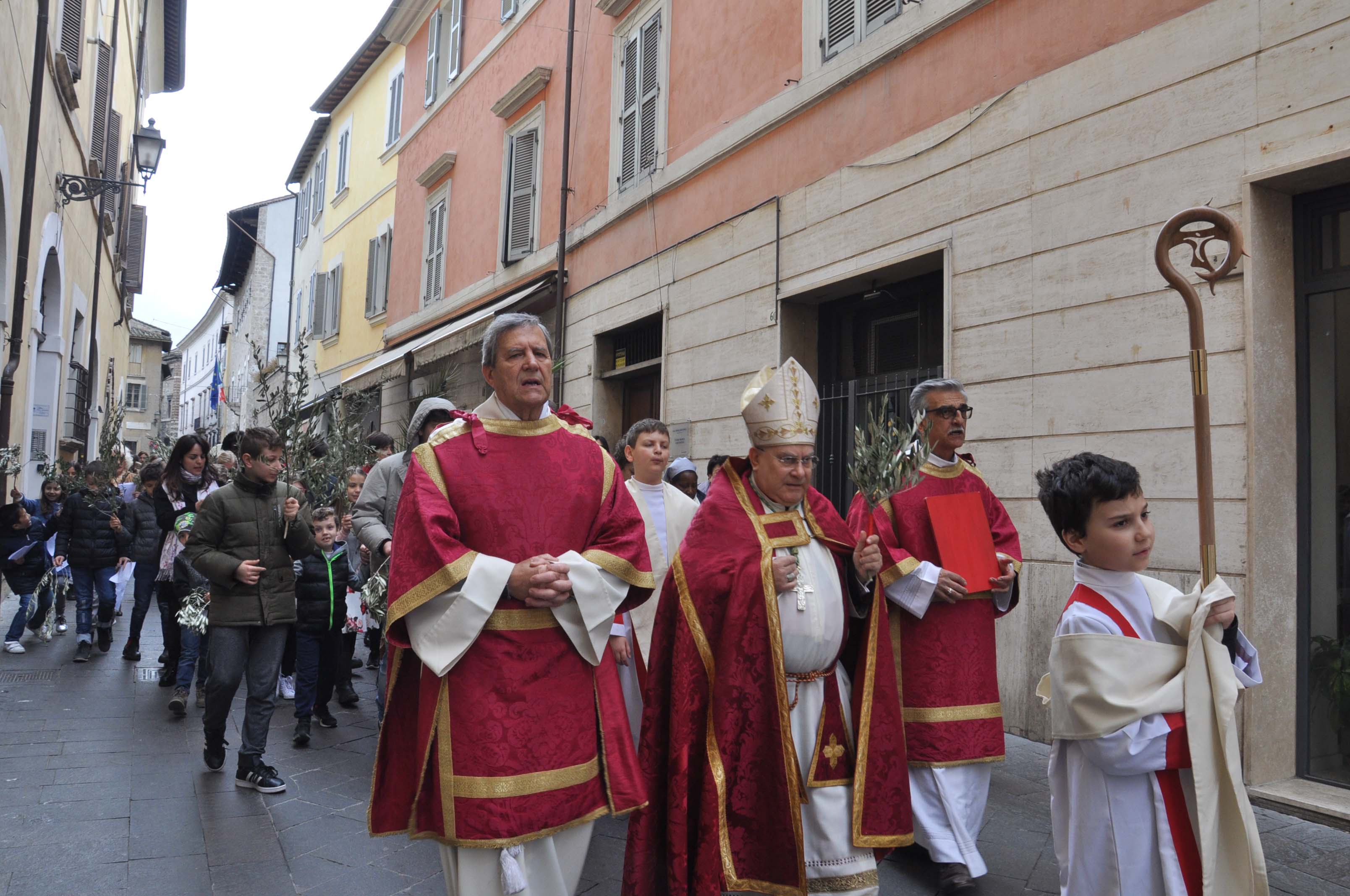Con la celebrazione della Domenica delle Palme, presieduta dal vescovo Giuseppe Piemontese con il rito della benedizione dei rami d’ulivo sul sagrato della chiesa di santa Croce e la lettura del brano dell’ingresso di Gesù a Gerusalemme, cui è seguita la processione dei fedeli con i rami d’olivo e al canto dell’osanna lungo le vie del centro di Terni verso la Cattedrale, dove il rito è proseguito con la lettura della Passione di Gesù e la celebrazione eucaristica, ha avuto inizio la Settimana Santa. Alla celebrazione hanno preso parte i bambini e ragazzi del catechismo e le loro famiglie delle parrocchie della zona pastorale Terni centro ed è stata concelebrata dai parroci della zona e animata dal coro della cattedrale.
