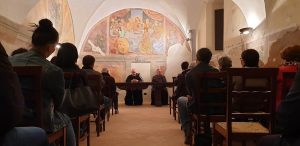 Il vescovo si è complimentato per la proposta fatta agli adulti dalla comunità francescana: “Vorrei trovare un po’ in ogni comunità dei cristiani adulti che si fanno discepoli della parola – ha detto padre Piemontese – che ripensano l’adesione della loro vita, della loro fede al Signore, e quindi crescono sempre di più nella vita di fede, speranza e carità, attraverso l’ascolto della parola, la catechesi, la preghiera, l’Eucaristia domenicale nel contesto di tutto l’anno liturgico. Il Signore ha un messaggio nuovo da darci ogni anno. Molte volte i cristiani pensano di aver esaurito il ciclo di formazione, di crescita nella vita di fede, nella vita cristiana, e si trovano poi sprovvisti nella testimonianza che devono dare. Alcuni, che sono più sensibili la parola del Signore e anche al compito che il Signore affida di annunciare il Vangelo, avete la responsabilità di testimoniare il Vangelo del Signore in questa comunità di Stroncone e ognuno per la parte sua, nella famiglia, nel lavoro, nell’espressione quotidiana della vita. Testimoniando di più nella famiglia l’amore per Gesù, noi stiamo qui donarci questa conoscenza gli uni gli altri”.