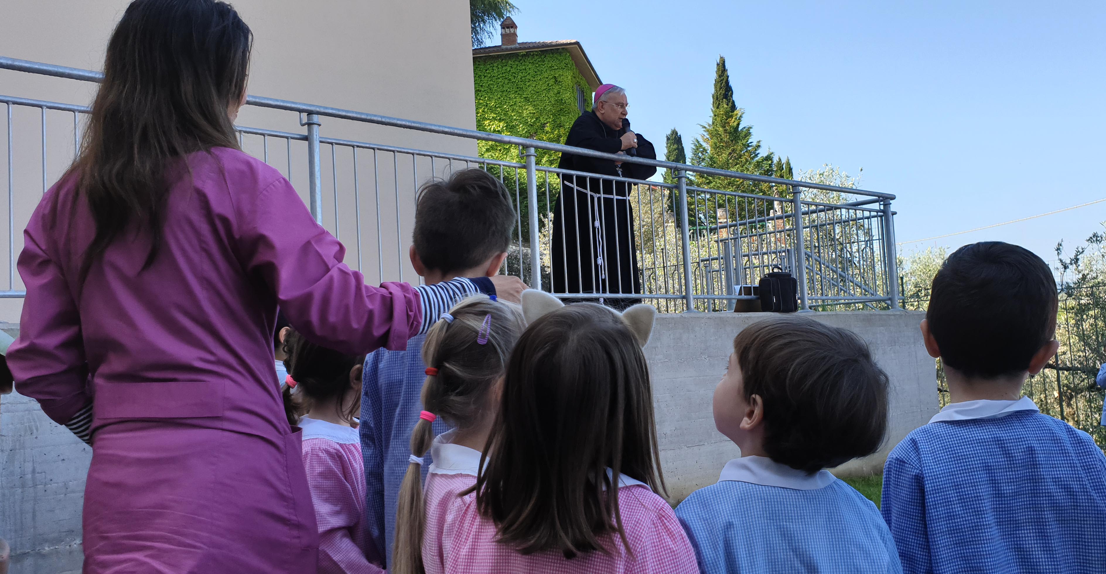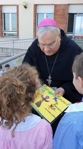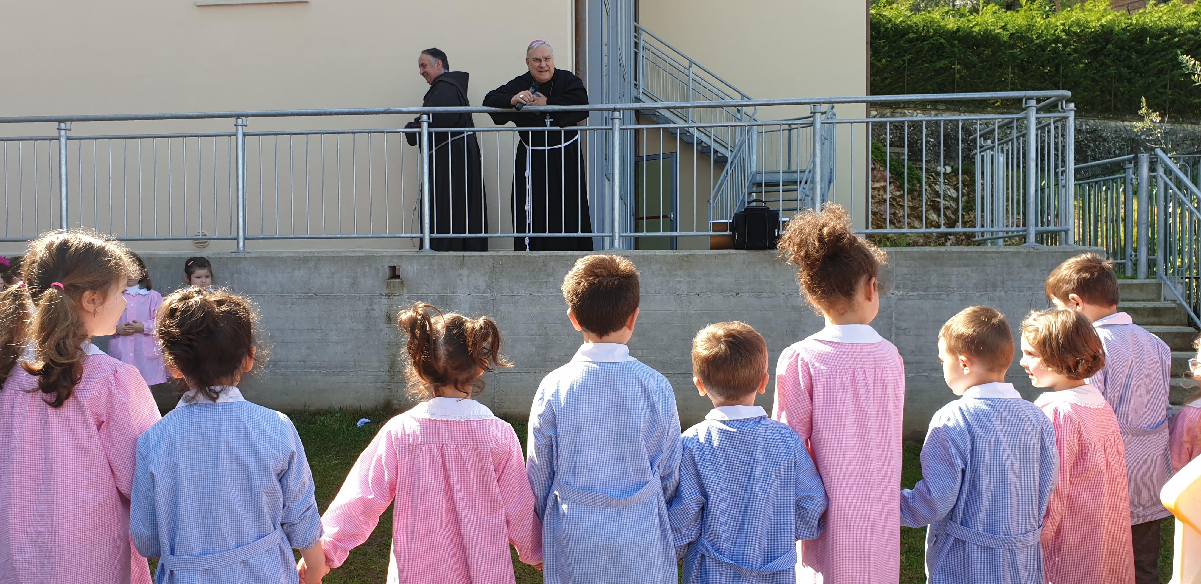Un incontro gioioso e festante con i bambini che hanno accolto il vescovo con dei canti e balli e un grande cartellone di benvenuto con i volti di alcuni ragazzi. I ragazzi della quinta classe hanno posto delle domande sulla missione del vescovo e sulla sua vocazione, sulla fede e il rapporto con il Signore. Il vescovo ha parlato loro del suo ministero, della visita pastorale, dell’amore di Gesù, di San Francesco e del suo amore per il creato e per ogni creatura che chiamava fratello e sorella, recitando un brano del Cantico delle Creature.