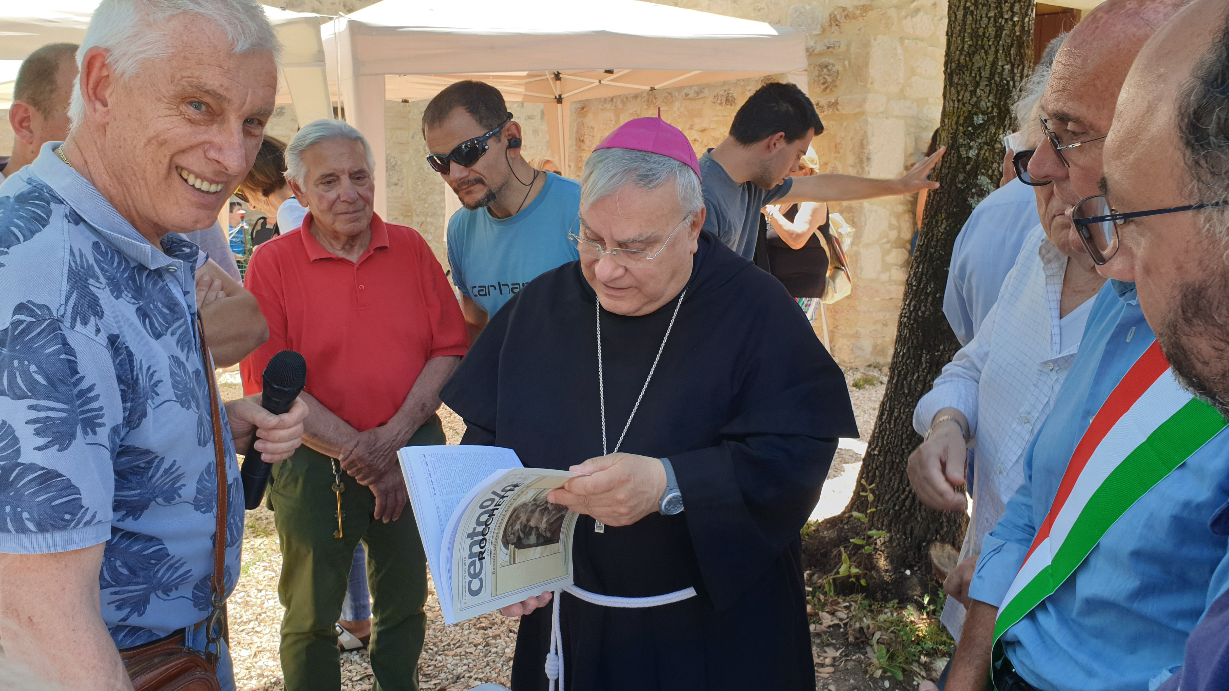 La comunità ha donato al vescovo una raccolta delle pubblicazioni dell’associazione “Cento per Cento Rocchette” e un libro “Rocchette, una piccola Svizzera alle port di Roma” sulla storia, cultura e arte del piccolo borgo e del suo castello.