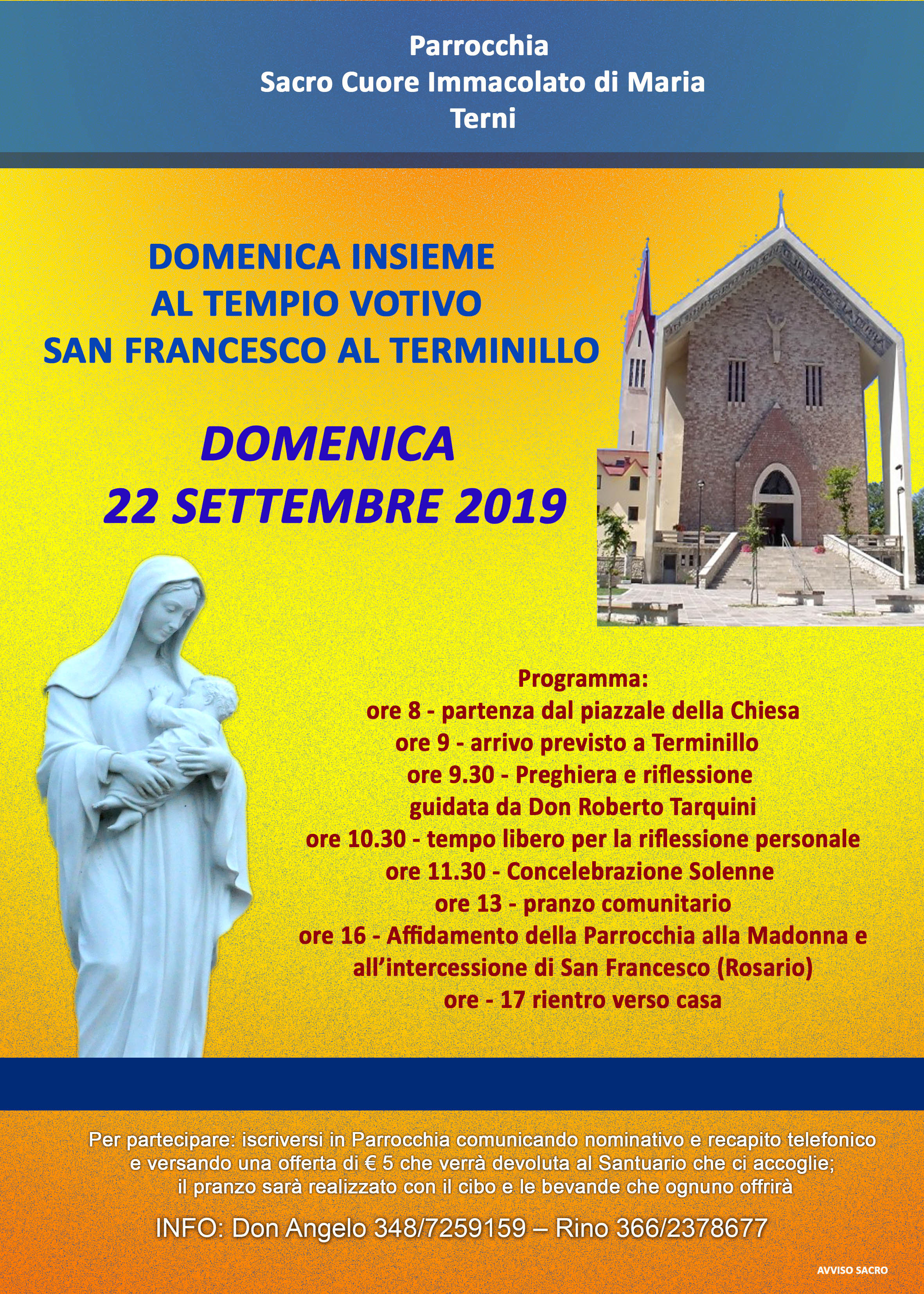 Domenica 22 settembre la parrocchia S. Cuore Immacolato di Maria di Campomicciolo inizierà l’anno pastorale con un incontro presso il tempio votivo di San Francesco al Terminillo.