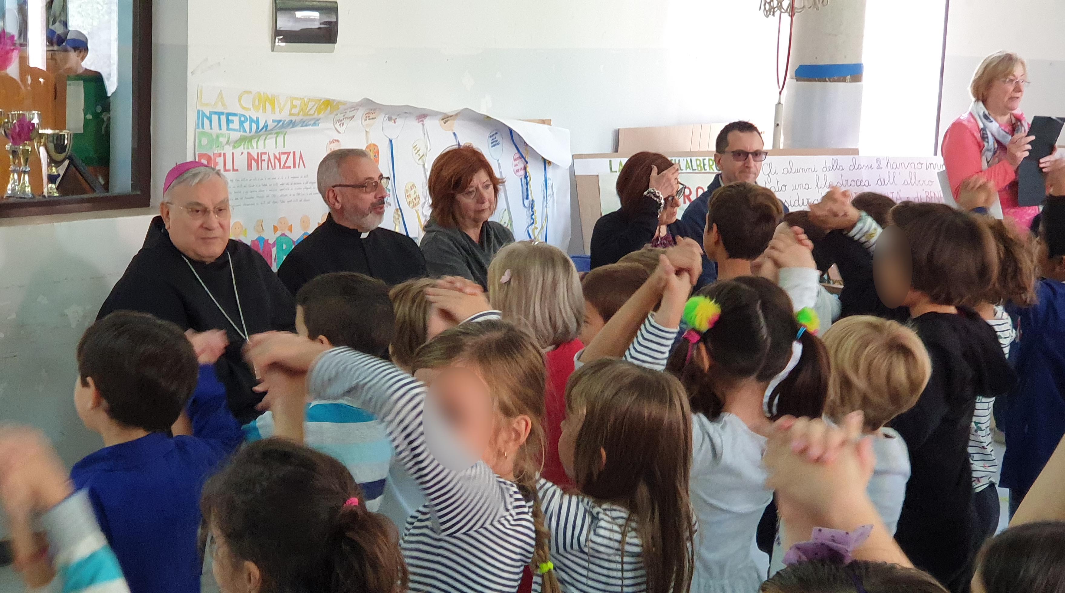 Il vescovo ha salutato con simpatia i bambini e li ha inviatati ad essere sempre studiosi e accoglienti con tutti. “Dovete stare bene con i compagni e con tutte le persone – ha detto il vescovo – e fare in modo che tutti stiano bene”.