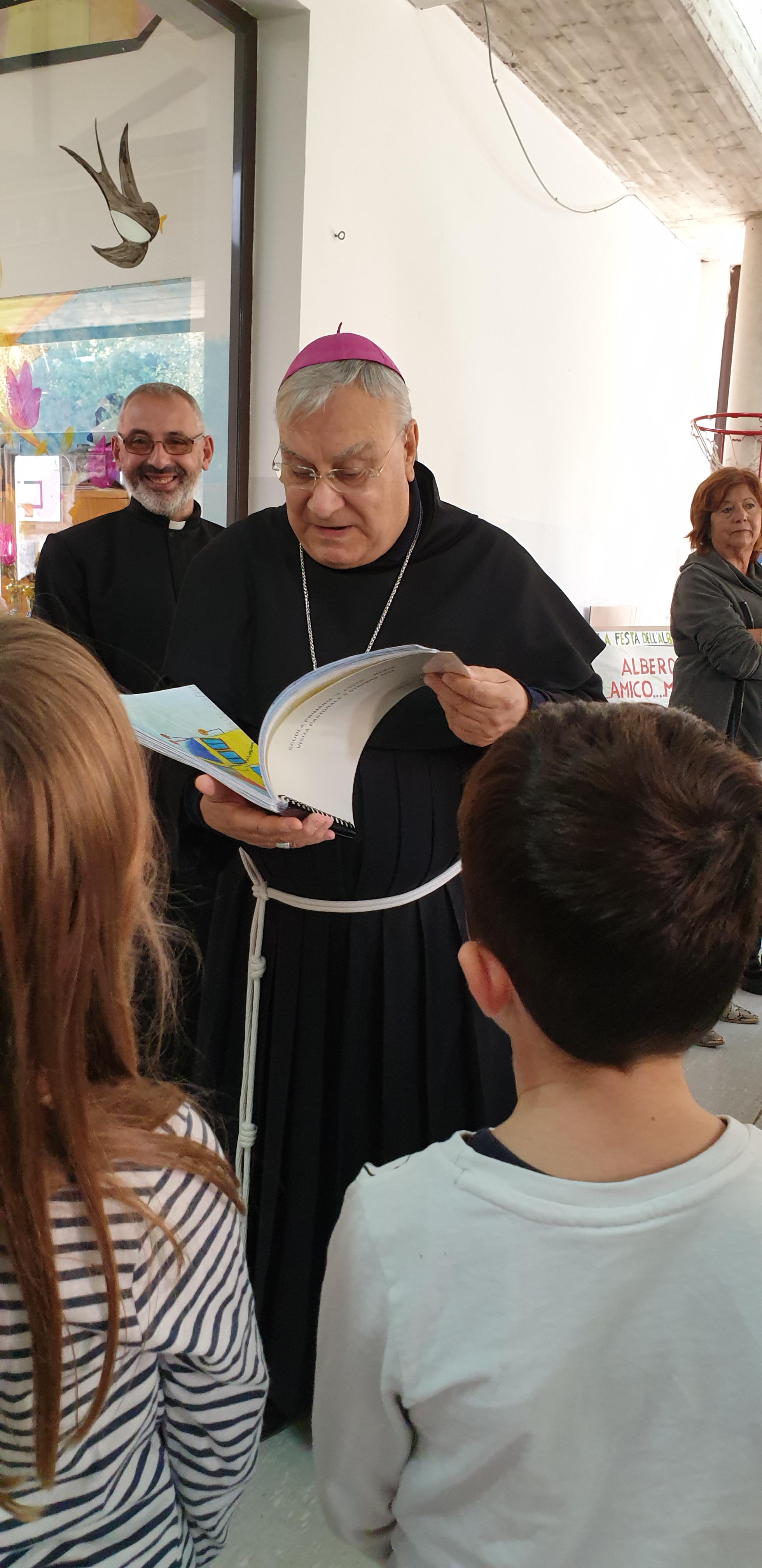 Il vescovo ha poi risposto alle domande dei bambini, parlando della sua vocazione, del suo paese di origine, del suo ministero, dell’amore di Gesù, di San Francesco e del suo amore per il creato e per ogni creatura.