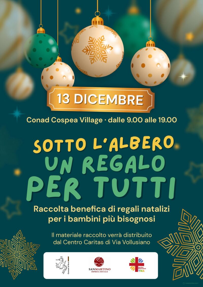Sabato 13 dicembre dalle 9.00 alle 19.00 al Conad Cospea Village “Sotto l’albero un regalo per tutti”, raccolta benefica di regali natalizi per i bambini più bisognosi.