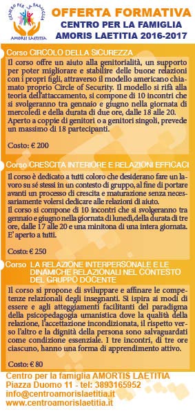 corsi_attivi_br 23 Dicembre 2016283 × 595Centro per la famiglia Amoris Laetitia – inaugurazione il 30 dicembre « Previous Image Next Image »